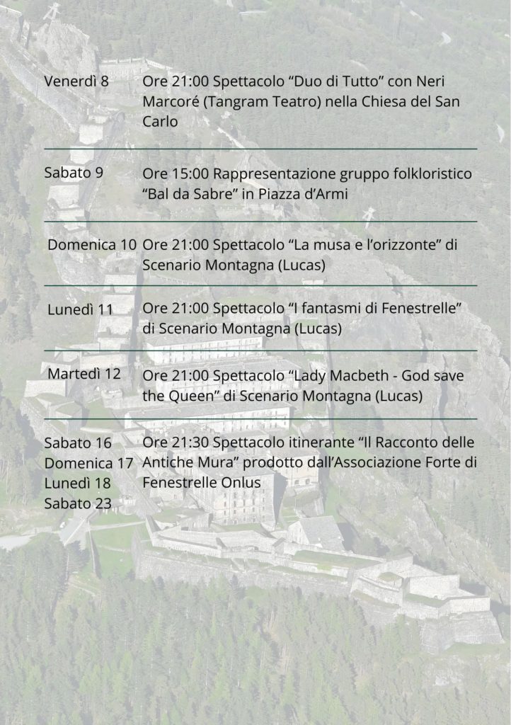 Ore 21:30 Spettacolo itinerante “Il Racconto delle Antiche Mura” prodotto dall’Associazione Forte di Fenestrelle Onlus